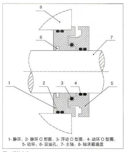 轴承箱隔离器是近十年出现的新型密封产品,是在复合迷宫密封的基础上发展起来的一种非接触密封形式。其机构由静环、动环、浮动环组合而成,静环阻止润滑油泄漏并带有回油孔,动环防止外界污染物进人轴承箱。浮动环连接动环与静环,将其锁定为一个整体,这个整体结构同时具有蒸汽阻隔作用。动环和静环上使用的是O型图密封,轴承隔离器是一种非接触、无磨损的轴承保护装置。当设备运行时,动静环之间不接触,所以没有功率损耗,同时利用自身结构特点防止漏油。